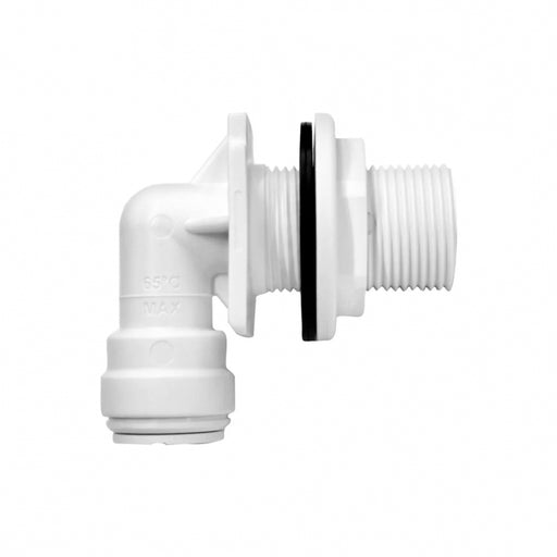 Gjennomføring med overgang 15 mm til 3/4" med 90 graders bend, John Guest (JG) hurtigkobling Push- fit kobling med utvendige gjenger i en ende o...